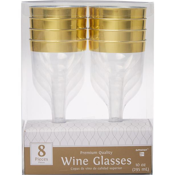 Premium Gold Trim Plastic Wine Glasses - 295ml (8pk)